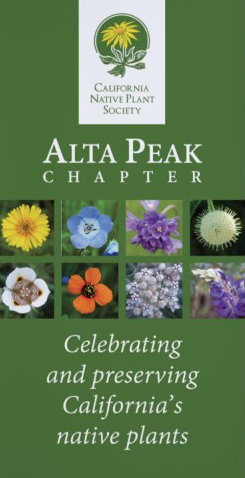 Note: By joining the Alta Peak Chapter of the California Native Plant Society at this time, you will also be eligible to pre-order native plants, at a 10% discount, prior to our October 1 Annual Fall Plant Sale.